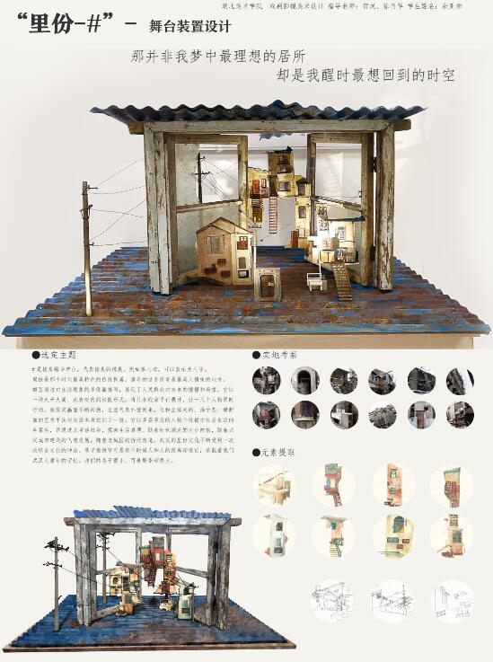 戏剧影视美术设计专业,呈现了包括舞台设计、灯光设计、影视概念设计、装置艺术、新媒体艺术等多种作品形式,作品题材涵盖领域丰富内涵,体现了戏剧影视美术设计同学对生活的感悟,对经典的致敬。同学们在设计创作过程中不断探索、不断思考、不断实验,用独特的个性,真实的表达,活跃的思维去塑造富有表现力的作品。