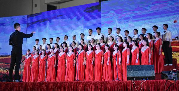 工业设计系辅导老师陈哲担任主持工作之一。灯光亮起,主持人为祖国献上最好的祝福,晚会正式拉开了序幕。在中国画系的演唱结束后,工业设计系合唱团怀着激昂慷慨的心走上舞台,他们把对祖国热爱融入到了演唱的歌曲《我的中国心》中。乐声响起,领唱邓文清书记精神高昂,各辅导老师、学长学姐表情庄严,热情饱满。“长江,长城,黄山,黄河,在我心中重千斤!”他们的歌声中汇聚着火一样的热情,充满了让人奋发向上的力量,唱出了中华儿女对祖国母亲的无限眷恋、对新中国70华诞的真挚祝福,表达了全校师生在中国共产党领导下,走中国特色社会主义道路,努力创建高水平大学的豪迈情怀。工业设计合唱团声情并茂的精彩演唱,感染了在场的每一个人,赢得了观众的阵阵掌声,最终取得了优胜奖。洋洋盈耳,余音袅袅,在舞蹈表演《映山红》结束后,公司教职工歌咏晚会落下了帷幕。演出结束后,在场同学仍意犹未尽,久久不能离场,会场内洋溢着师生们的爱国热情。