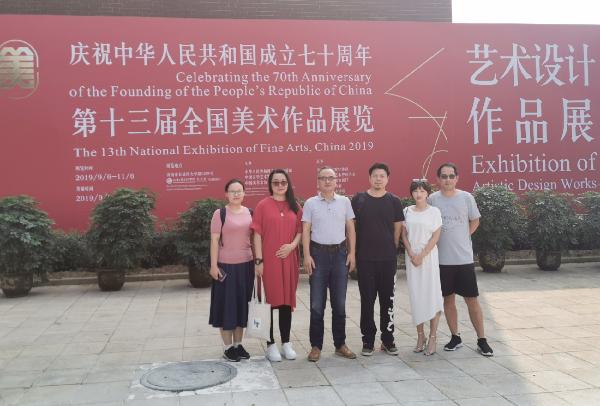2019年9月6日,第十三届全国美术作品展览艺术设计作品展在山东工艺美术公司美术馆隆重开幕,拉开了第十三届全国美展的大幕。展览展出来自全国设计者们的设计作品共495件套,其中涵盖了平面艺术设计作品102件套、工艺美术设计作品98件套、工业艺术设计作品80件套、服装艺术设计作品66件套、环境艺术设计作品95件套、建筑艺术设计作品54件套,其中进京作品73件套,包含获奖提名作品11件套。本次展览由工业设计系李梁军主任带队,组织系专业教研室杨艺、贺诚、王莉莉、田涛、杜妍洁5位老师参加开幕式活动。