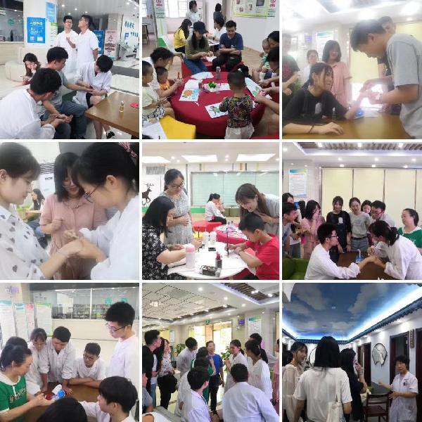 在随后的整个社会实践活动期间,我系暑期社会实践队的同学们不仅从院方医师的教导中学习了如何辨认穴位、推拿刮痧等相关技能,大家更是本着奉献社会的精神,在后续社区义诊活动中积极为社区老人测量血压血糖等体检项目检查以及为社区民众贴发三伏贴。同时为贯彻学而致用的精神,我系社会实践服务队针对院方提出的任务要求,以实际问题为导向,认真深入基层医疗工作、了解医院整体构造,从儿童区域设计、养生茶区域与图书角区域设计、眼科导向标识及 推拿区域四个部分为切入点进行改良,从而最终做出一套体现人文关怀并充盈着中医文化的设计方案。此外,同学们不仅为前来医院接种疫苗的少年儿童分享绘画与书法带来的欢乐,还利用前几日接触学习的中医实操知识积极协助相关医护工作。