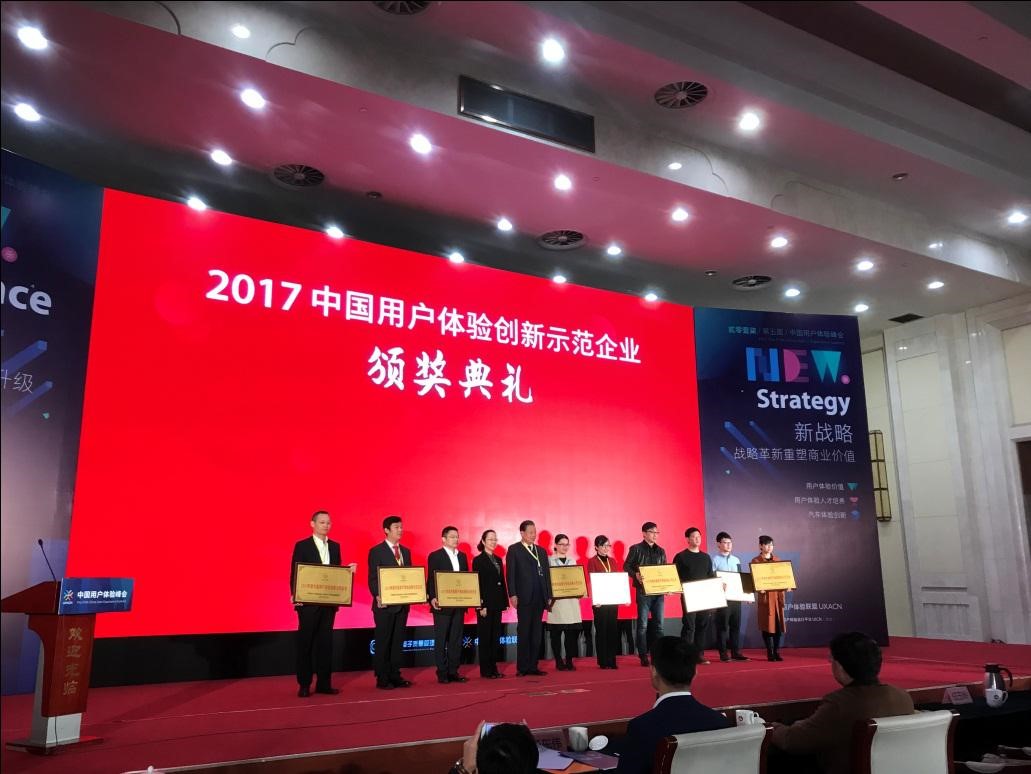 峰会上举办了2017年度中国用户体验创新示范企业颁奖仪式, 金蝶软件(中国)有限公司、TCL数字技术有限公司、广州方铭交互信息科技有限公司、广州威纳信息科技有限公司、惠州市德赛西威汽车电子股份有限公司、深圳市墨默交互科技有限公司、中国电信股份有限公司上海研究院、中国建设银行股份有限公司广州电子银行研发中心、北京津发科技股份有限公司、北京优迪信息技术有限公司等10家企业被评为2017年度中国用户体验创新示范企业。