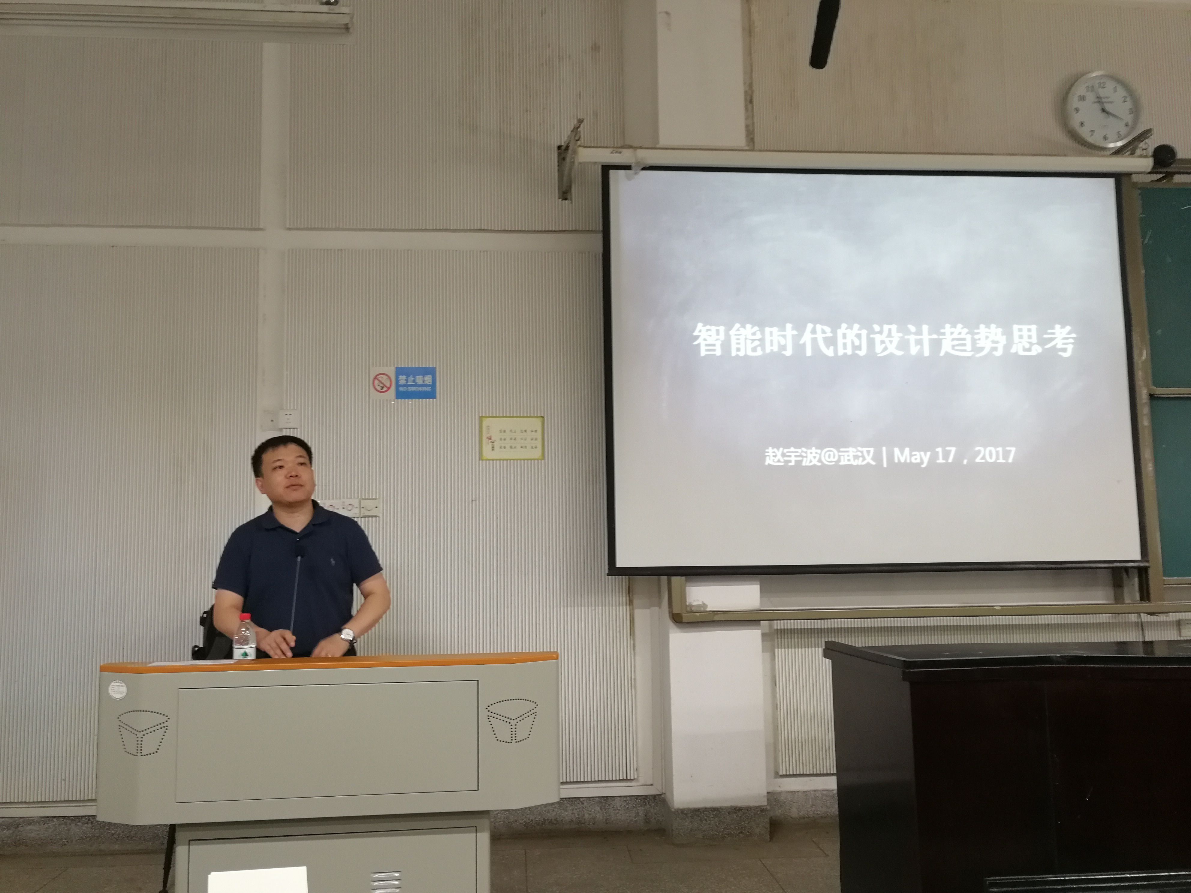 2017年5月17日下午三点半,A12-204教室,赵宇波先生应邀来校开展“创新设计的方法和趋势思考”的专题讲座。