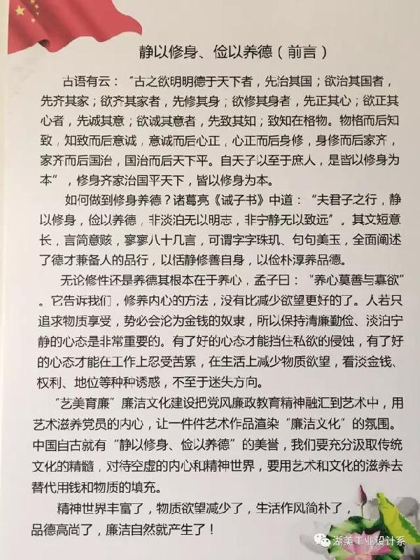 2017年5月16日上午10时30分,我系在A6-204举办了“艺美育廉”廉洁文化艺术创作作品展启动暨颁奖仪式。工业设计系书记汪早林、主任张锐莅临现场参加了“艺美育廉”廉洁文化艺术创作作品展颁奖暨颁奖仪式。