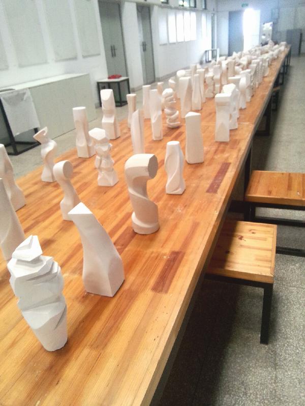 此次《造型设计基础》课程为其3周,由我系产品设计专业教师刘向东老师和张锐老师共同指导完成。本课程主要是对形态和材料的实验学习,了解形态创造的方法、材料的认识,以及对它们的综合利用。前期老师从形态、材料、构造等关系出发,讲解了造型要素、形态语义。基于对形态的一定理解上,运用石膏来进行抽象形态表现。这个课程的目的不仅要考虑员工对形态设计的掌控能力,还要考虑形态间的过渡方式以及对整体与细节关系处理。