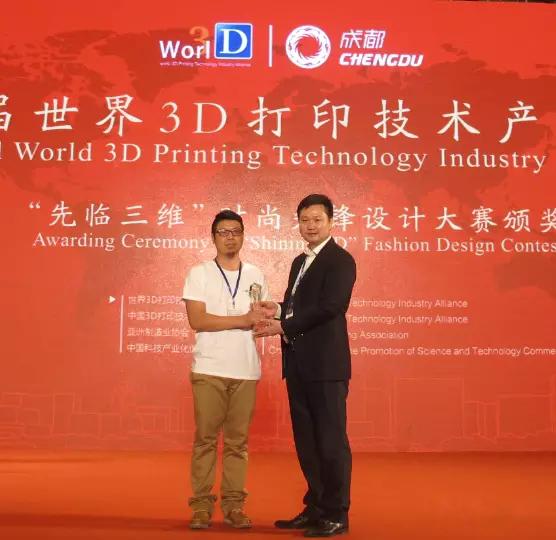 6月3日18:30“先临三维”3D打印时尚秀展示节目正式开始,青春靓丽的模特穿着由全球3D打印创客设计的3D打印时尚饰品T台展示,专业评委根据打印作品的展现效果做最终奖项评定。公司工业设计系杨艺老师指导的员工廖罗伟、余俊辉作品《让爱无界—首饰设计》荣获时尚先锋设计奖。