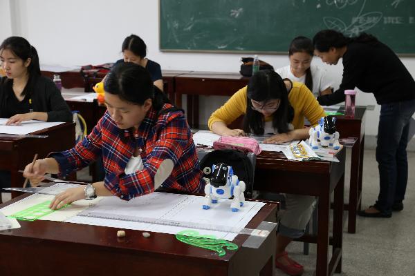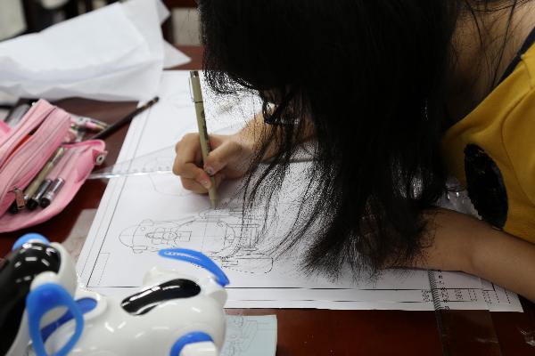 新闻网讯 教室里鸦雀无声,有老师没老师一个样,没有迟到、旷课现象,没有交头接耳,没有玩手机,没有睡觉,只有一个个默默作图和看书的身影,这才是大公司园最美好的场景,是莘莘学子认真的求学,是师生共同探讨学术的殿堂。这一幅幅画面见证的正是工业设计系14级工业设计专业员工学海泛舟的勤奋和努力。