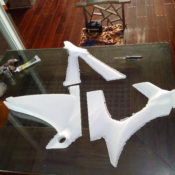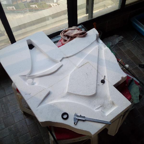 制作过程历经艰辛,学会了很多,也发现了很多问题,其中包括2个重大失误:模具没有硬化,导致模具收缩,尾叉开档不严谨。最严重的是,打磨的急于求成,导致最后补了2遍透明补土,表面还是坑洼不平。这些都成为宝贵的经验,指导我今后的设计制作。