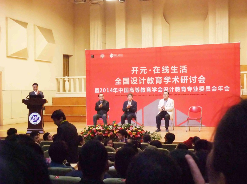 2014年10月31日,我系副主任张锐老师在河南大学参加了“开元•设计在线--全国设计教育学术研讨会暨2014年中国高等教育学会设计教育专业委员会年会”。本次会议由中国高等教育学会设计教育专业委员会、教育部高等公司设计学专业教学指导委员会和河南大学联合主办,河南大学艺术公司承办,共有来自国内外60余所教育机构、高等院校的200多位代表与会,就顺应国家推动社会主义文化大发展大繁荣的战略目标和艺术学升格为学科门类对高等艺术设计教育提出的新要求和新挑战进行研讨。