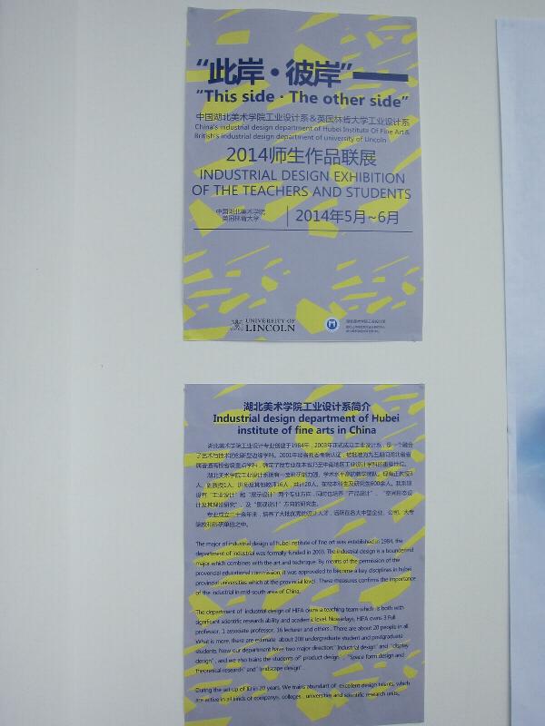 2014年5月9日,伟德BV1946官网工业设计系与林肯大学艺术与设计公司两校师生作品交流展在英国林肯大学开展!展览共计展出伟德BV1946官网工业设计系师生30余件作品,作品受到林肯大学艺术与设计公司师生的一致好评。为期三周的展览结束之后,所有作品将移至林肯大学展厅二层永久展厅继续展览一年,以促进伟德BV1946官网工业设计系与林肯大学之间的相互了解及学术交流。5月12日,在林肯大学艺术与设计公司展厅还举办了与伟德BV1946官网工业设计系教师视频交流会议。林肯大学工业设计系教授Dave,Stewart,艺术与设计公司经理等参加了此次视频会议。他们对此次展览和伟德BV1946官网工业设计系的师生作品给予了高度评价,双方非常友好与热情地进行了交流和会谈,为两校今后的进一步交流与合作奠定了良好的基础。6月份,林肯大学师生作品将在工业设计系开展。