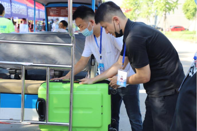 志愿者帮助搬运行李