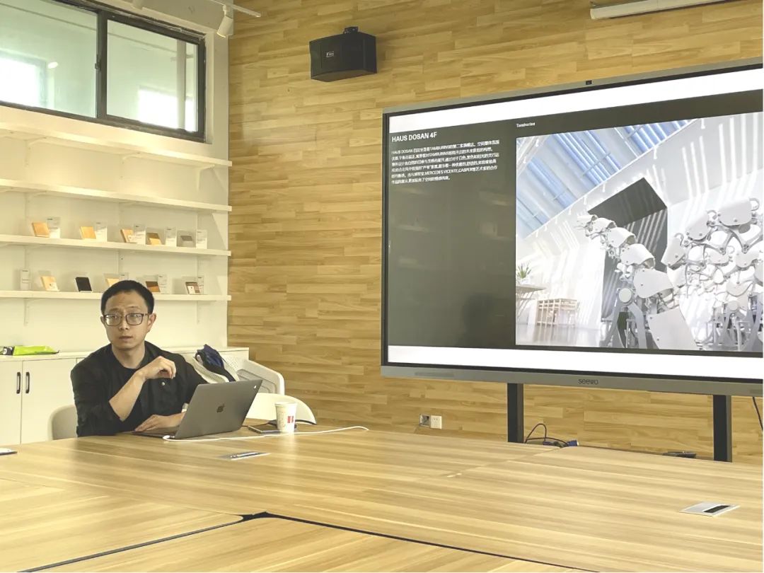 首先,杨艺老师向全体研究生导师与研究生介绍了郑达教授,随后,郑达教授向参加活动师生展示了近期艺术工作成果,并以“HAUS DOSAN”品牌的案例举例分享其创作思路,详细介绍了自己在人工智能和艺术融合方面的研究经验,并对未来艺术创作的方式方法进行了构想。希望关注设计领域的研究生们未来阶段的设计带有“研究”的特质,创意带有“思辨”的精神。