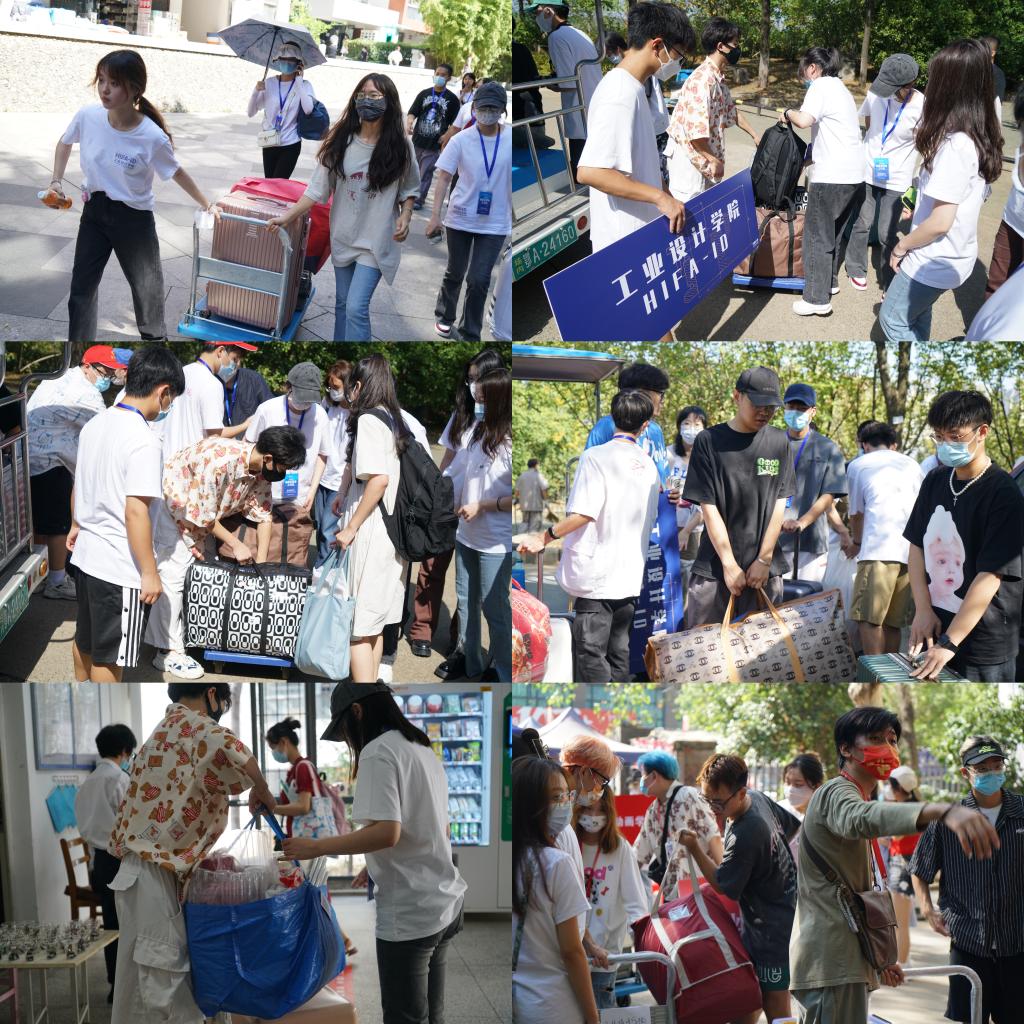 9月6日,新生报到正式开始。新生在校门口完成入校信息查检后,党员教师带头,耐心指导新生完成报到流程并帮助新生将行李搬运至寝室内。9月7日,机动志愿者于A6教学楼一楼大厅为新生分发教材和防疫物资,现场秩序井然。