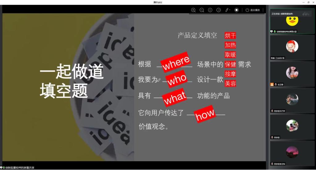 为期二天工作坊通过线上指导、线下创作的模式进行,以技术为核心开展产品设计,包括产品定义、手绘方案、设计展示等三个环节,由深圳创新设计研究院的设计导师为员工们进行相关的技术背景介绍,引导同学们针对产品进行头脑风暴、市场调研、确定产品定位,并形成手绘方案、产品效果图。