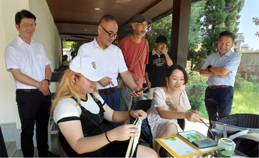 在鄂州市汀祖镇与鄂州市梁子湖区沼山镇实践教学基地,李梁军经理仔细询问了师生们的学习状态、学习需求和学习感受等方面的情况,到住宿生活区查看了员工们的食宿条件,了解员工们的适应情况。他希望同学们走出课堂、深入乡村,站在美丽中国建设与发展的“最前线”,用画笔记录人民群众的幸福生活;强调出行安全和员工管理,同时鼓励同学们珍惜写生机会,多观察、多思考,互相学习,注意身体,平安返校;鼓励同学们保持对艺术创作的美好追求,从本次艺术实践课程中汲取经验,做到学思用贯通、知信行统一,以描绘更精彩的未来蓝图。教学基地所在辖区的政府领导非常重视,对公司师生开展的此次活动进行了周密部署和安排,并全程陪同参与慰问师生。