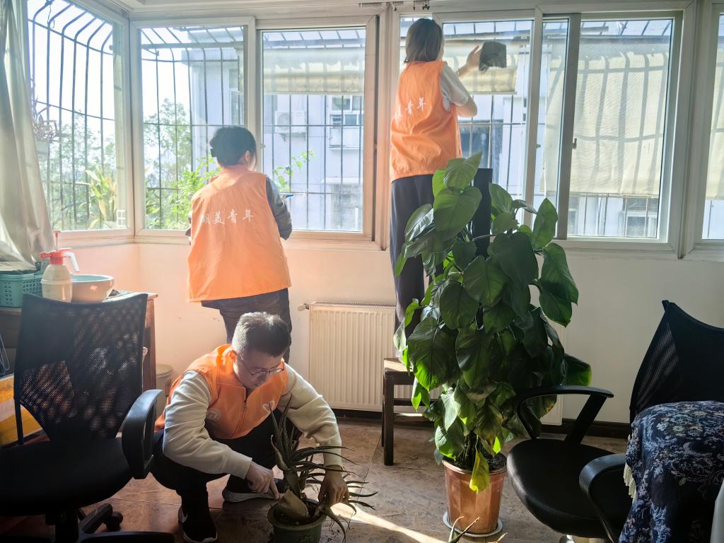 志愿者们来到家属院后,根据工作安排分别看望了两位老教师。在“布偶奶奶”陈立君老教授的家里,她热情洋溢地向队员们介绍了自己创作布偶娃娃的初心与坚守。她利用各种废泡沫、旧海绵、碎花布等废旧物品,化腐朽为神奇,结合自己天马行空的创造思路,接连创造出一个又一个布偶佳作。在高级工艺美术师余建安的家里,她向志愿者们展现自己老有所为、老有所学的生活状态,每天坚持练书法、学习花艺,将枯燥的生活变得多姿多彩。志愿者们分工协作,相互配合,全身心投入到整理杂物、清扫房间中,所过之处一尘不染、井然有序,老教师们的居家环境焕然一新。随后志愿者们与老教师们亲切交谈,老教师们简要回顾了自己的工作历程和对伟德BV1946官网的热爱之情,为当代老员工成长成才给予厚望和祝福。温馨、祥和的互动谈话,给平日清静的房屋带来了阵阵欢声笑语。