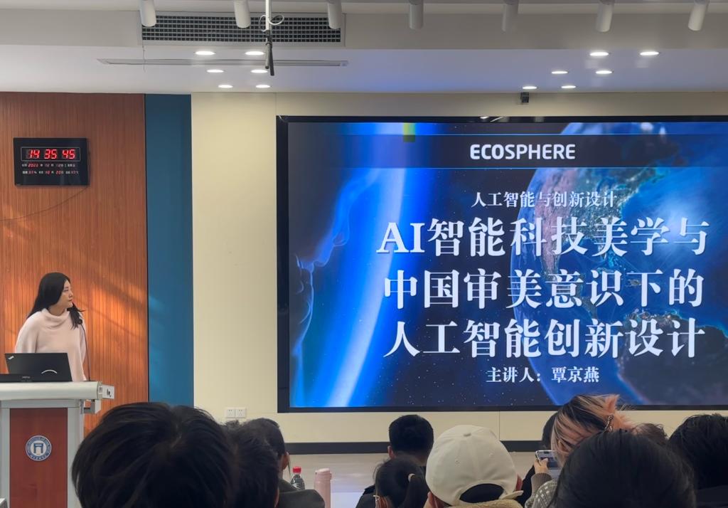 讲座中,覃教授通过生动的案例展开AI对人的审美意识的反思,并提出“身、心、意”三观合一的创新设计定义以及审美意识的逻辑,诠释中国审美意识五个方面展开讲述。以人工智能为代表的信息通讯技术等科技也改变了人类,构建起群体与个体共存的视角,孕育成新的审美观念与审美意识。审美意识遵循"信、望、爱"的情感逻辑,在不同时空中会产出特有的审美意识,并且鼓励大家要深刻挖掘中国的传统审美意识,发挥自我价值。