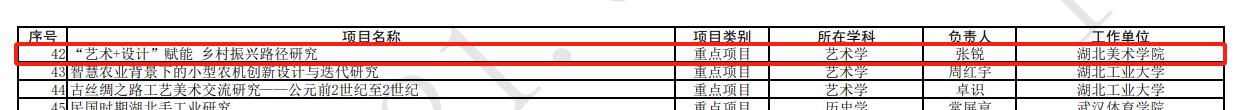伟德BV1946官网张锐申报的《“艺术+设计”赋能乡村振兴路径研究》,李和森申报的《智能低压断路器人机界面设计可用性评价模型研究》获批2023年度省教育厅哲学社会科学研究重点项目;杨艺申报的《文化创意产业赋能乡村旅游融合发展研究》,黎晓申报的《疗愈性陶瓷绘画干预青少年负性情绪的机制研究与应用》获批2023年度省教育厅哲学社会科学研究一般项目。