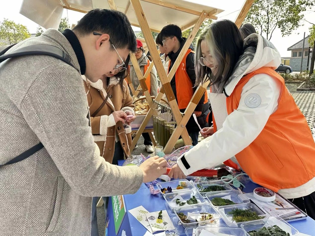 在青春公益市集现场,向日葵志愿服务摊位既展示了竹编工艺美术作品、微型城市景观模型,还设置了非遗文化植物拓印、DIY创意手工等工艺美术制作体验......丰富的活动内容吸引了众多市民朋友前来欣赏、体验、感受艺术文化的魅力。