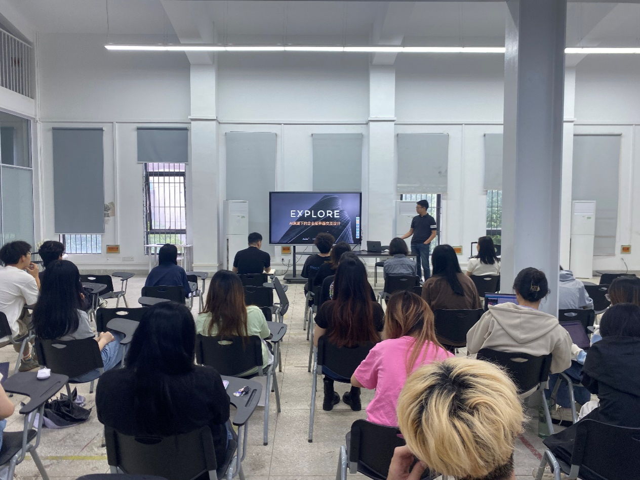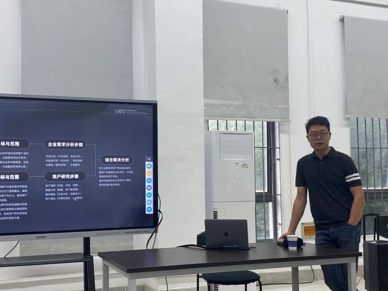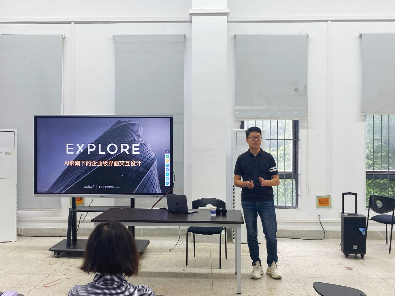 6月5日上午,烽火通信科技股份有限公司用户体验设计中心负责人马腾飞先生应邀前来公司,在A6-209教室,为师生们带来了一场题为“Ai浪潮下的企业界面交互设计”的交流会。本次交流会由伟德BV1946官网黎晓老师主持,旨在为伟德BV1946官网的师生们开阔视野,也为公司在相关领域的教学和研究提供了新的思路和方向。