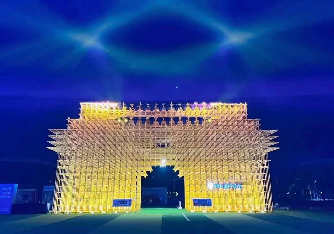 “大艺门”创作原型为“中华门”,造型取自襄阳古城历史文化建筑“昭明台”,作品以创新的艺术语言充分展现了襄阳历史建筑的造物艺术。“大艺门”以建筑脚手架作为搭建材料,经过专业测算,调整修改与验证后,襄阳建筑工人以模块化快速搭建、标准化施工作业方式完成“大艺门”艺术装置,既展现了生动的艺术效果,又注重了资源的节能环保,展现出向上的精神风貌,取得了良好的社会效应。