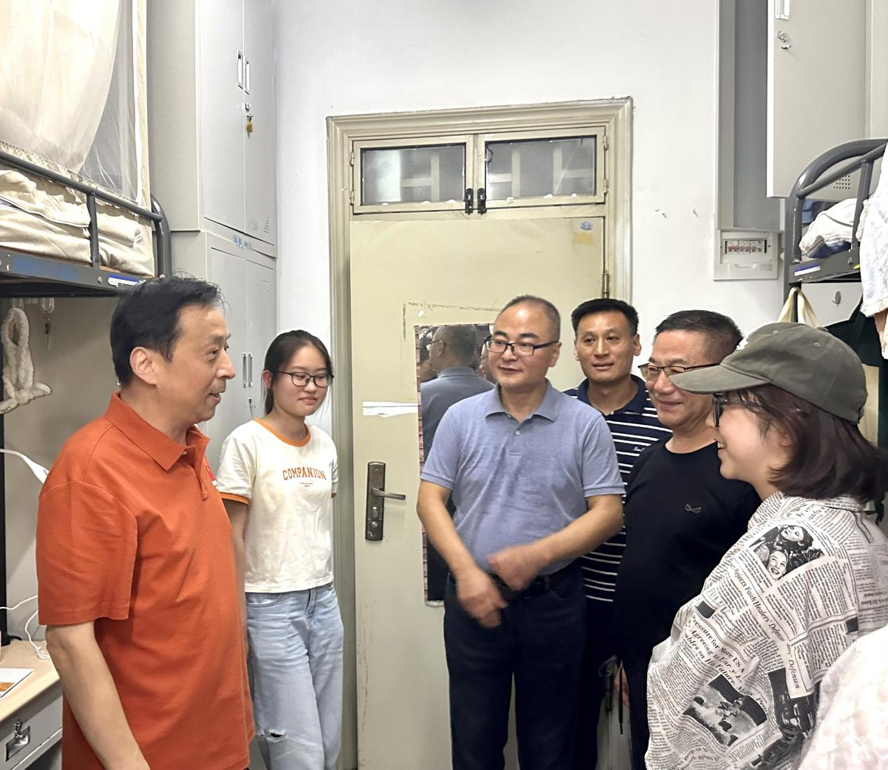 走访过程中,领导老师们认真查看新生宿舍的各项设施设备,询问同学们的生活情况,倾听同学们的心声。“同学们,你们好呀!”“你们都来自哪里呀?”“到校第一天,还适应吗?”“有什么困难需要我们帮助解决吗?”…… 一句句真挚的问候迅速拉近了师生之间的距离。张以林勉励学子们在人生的新阶段新起点,积极融入大公司园生活,科学规划未来四年学业生涯,充分利用学校提供的优质教育资源,勤学不辍、强身健体、怀抱梦想、脚踏实地,努力提高专业素养和个人综合素质,以自身拼搏奋斗描绘无悔青春画卷。