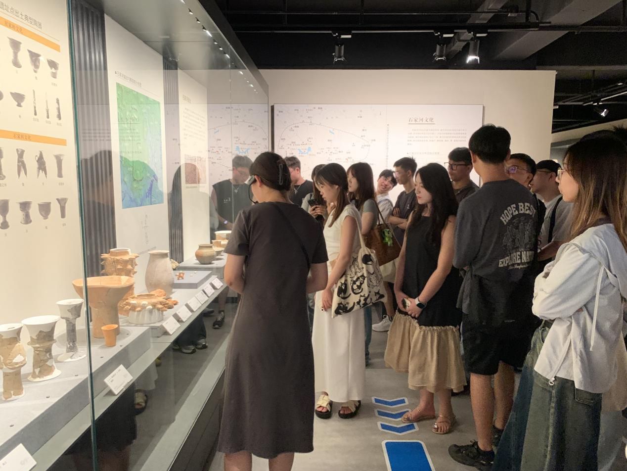在专业讲解人员的引领下,师生一行人依次参观了“千年文脉·长江文明考古展”与“世纪工程·三峡考古成果展”展览。珍贵的文物、精心布置的不同历史时期长江文明考古展台,特别是陶器、玉器、青铜器等多样化的出土文物,为工作站的研究生们提供了丰富的文化创意素材。