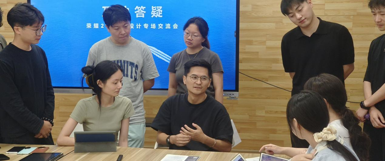 互动环节中同学们积极提问,荣耀团队耐心细致进行解答,现场氛围热烈活跃。工作人员仔细翻阅同学们简历与作品集,提出建议并深入交流。