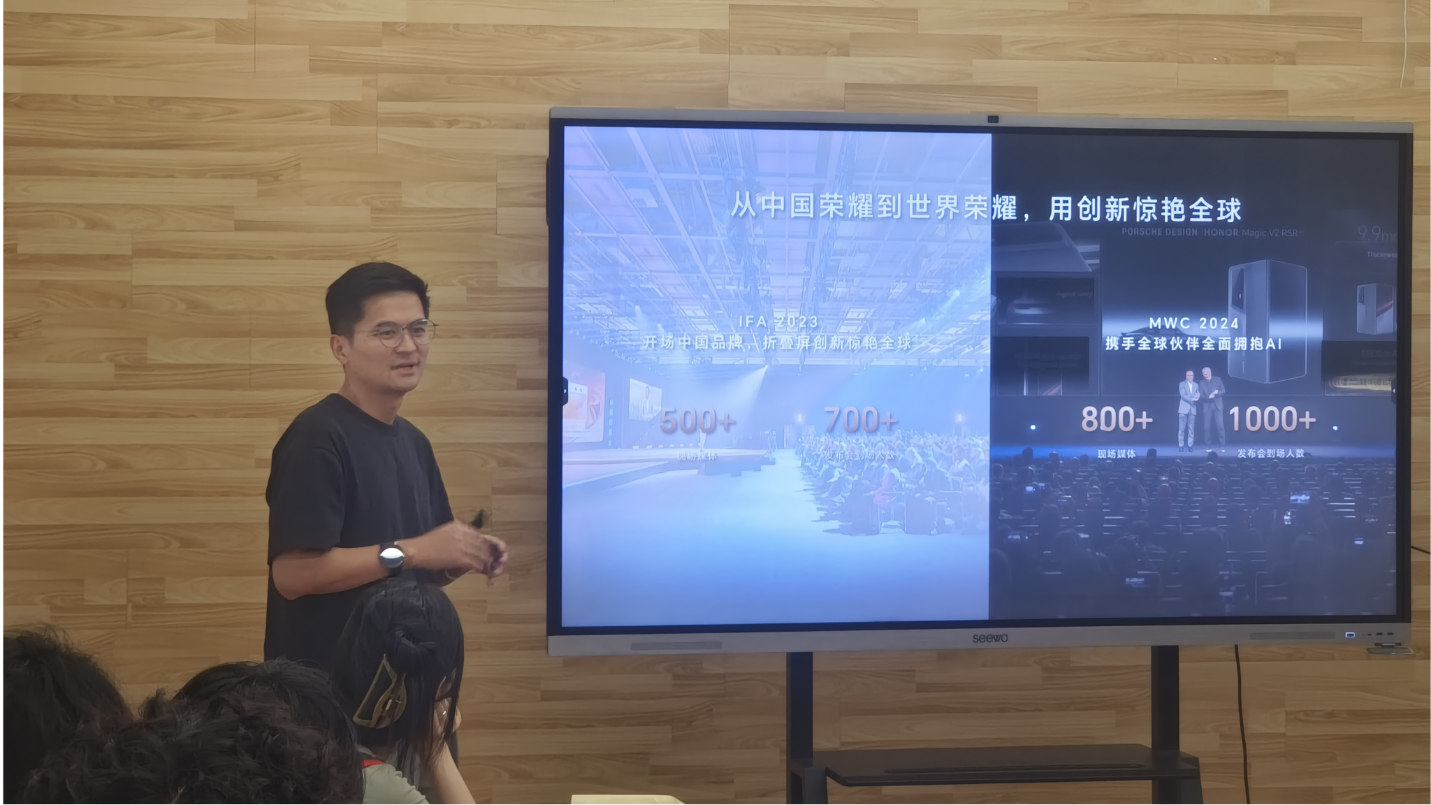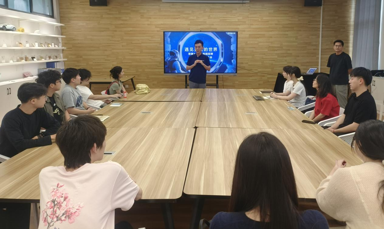 9月13日下午,荣耀终端有限公司来公司举办企业招聘宣讲会,公司招聘经理赵智勇、设计专家易曙光、辅导员李洋及公司2025届毕业生代表共同参与此次活动。