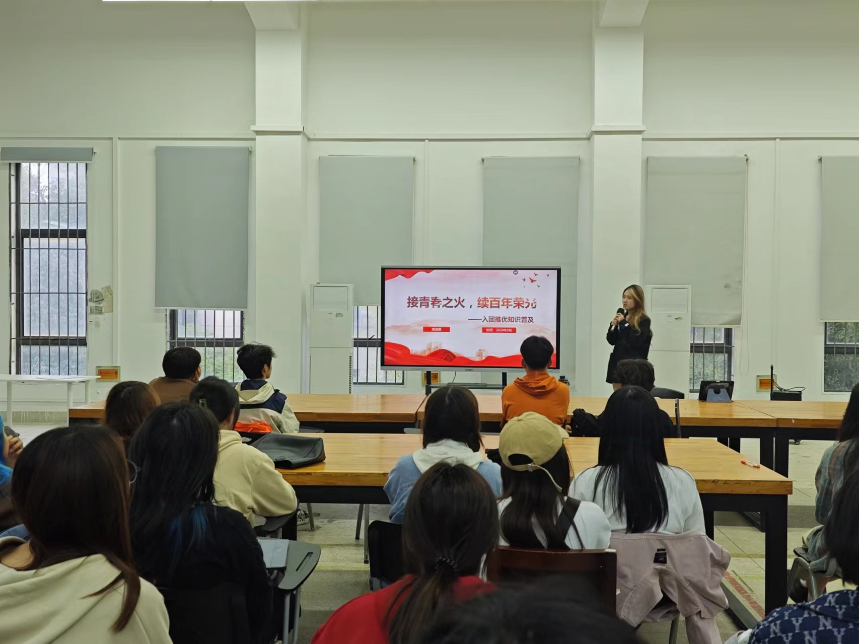 公司团委员工兼职副书记龚凌霜介绍了申请入团的注意事项和团员发展流程。