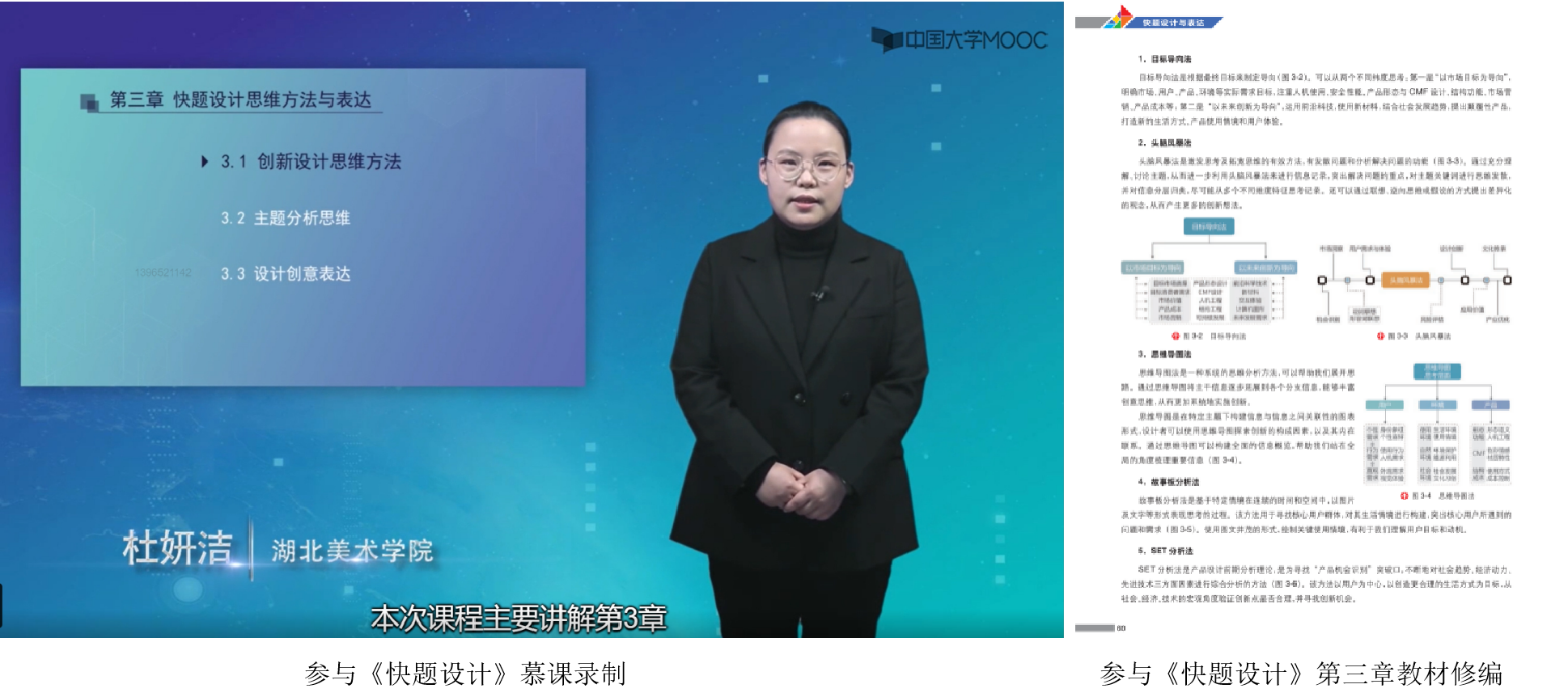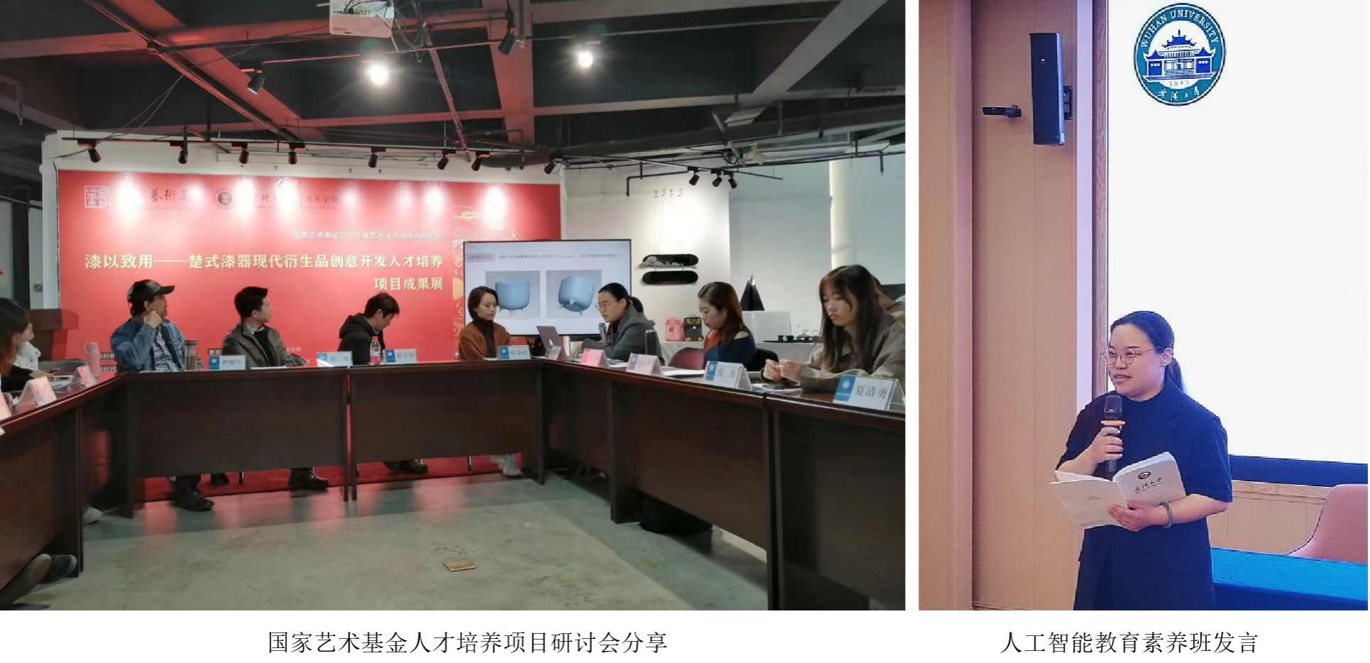 “在教学方面,需要有高度的责任意识,以勇于创新的精神和踏实勤奋的工作态度,注重产学融合培养,不断探索公司产品的新路径、新方法。”她在平时公司产品中,注重培养员工具有发现需求与问题的敏锐洞察力、思考问题的系统分析能力、以及设计决策的判断力。强调对员工设计思维培养,通过课上与课后持续与员工的沟通交流,分享学习资源,鼓励员工自主学习。以及引导员工正确看待AIGC技术,并将其应用于设计创新。理论与实践相结合,将企业需求融入设计教学来指导创新实践。同时不断自我学习提升,利用课余时间参加国家艺术基金资助项目“楚式漆器现代衍生品创意开发人才培养”学习;武汉大学访学,研究方向生态美学与楚式髹漆产品设计;第57届全国设计大师班学习;参加数字互动实践创作课程;积极参与《快题设计》教材修编和慕课录制;武汉大学“高校教师人工智能教育素养专题培训班”;参加吉利集团全球汽车创新设计营;中央美术公司设计公司、吉利公司与机械工业出版社联合主办“新语境·2024 中国汽车设计人才培养论坛”参会发言;以及参加公司组织的“百名教授进百企”活动,与浪尖集团开展校企合作,积极促进产教融合实践就业等。以实际行动诠释新时代教育工作者精益求精、奋发图强的精神,在教育道路上不断前行,为培养优秀人才、推动公司产品发展不懈努力。