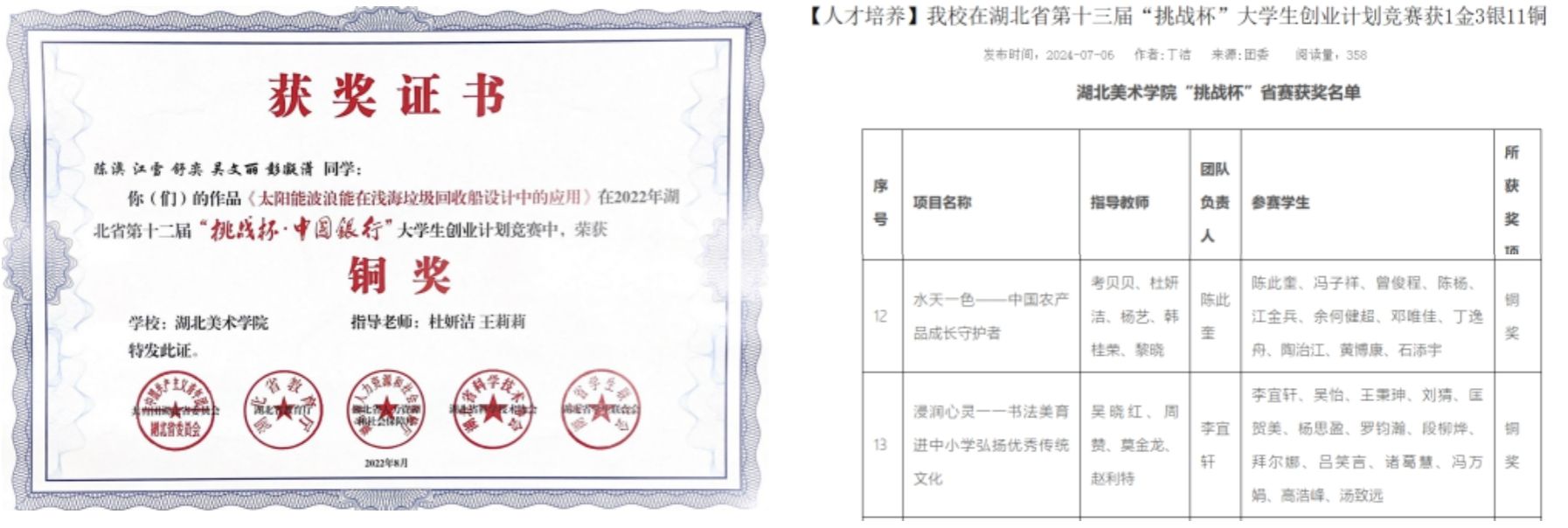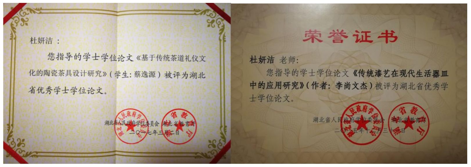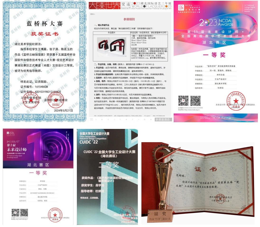 指导员工论文荣获湖北省优秀学士学位论文,指导国家级、省级老员工创新创业项目24项,指导员工作品获得2022年全国老员工工业设计大赛国赛铜奖,第十届未来设计师全国高校数字艺术设计大赛国赛二等奖,2022芬兰AG设计奖国赛铜奖,指导员工作品参加“挑战杯”荣获省级铜奖2项,指导员工作品荣获“北村奖学金”二等奖,“致美奖学金”设计类优秀奖等,指导员工作品参加国家级、省级专业设计竞赛荣获金、银、铜等50余项等。