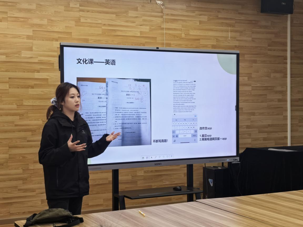 王新淙着重讲解考研具体要求与详细流程,分享自己作为跨专业考生备考的心路历程,鼓励大家勇敢追求理想,积极进取。