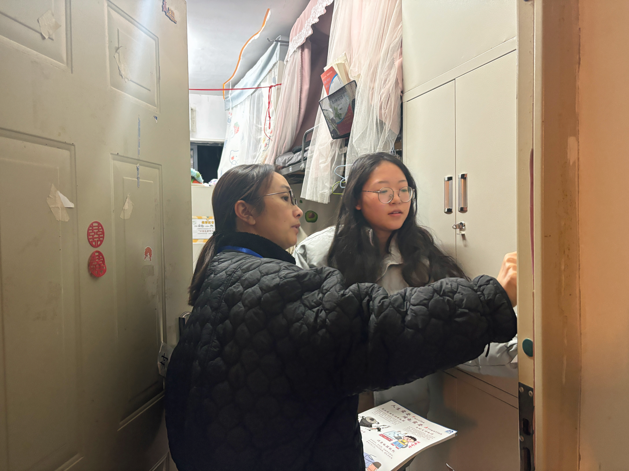走访过程中,老师与同学们亲切交谈,询问同学们的学习、生活和宿舍关系等情况,叮嘱同学们注意身体健康,及时增添衣物,合理规划时间,保持良好的学习生活习惯,注意宿舍用电安全、防范电信网络诈骗,保护好人身财物安全。