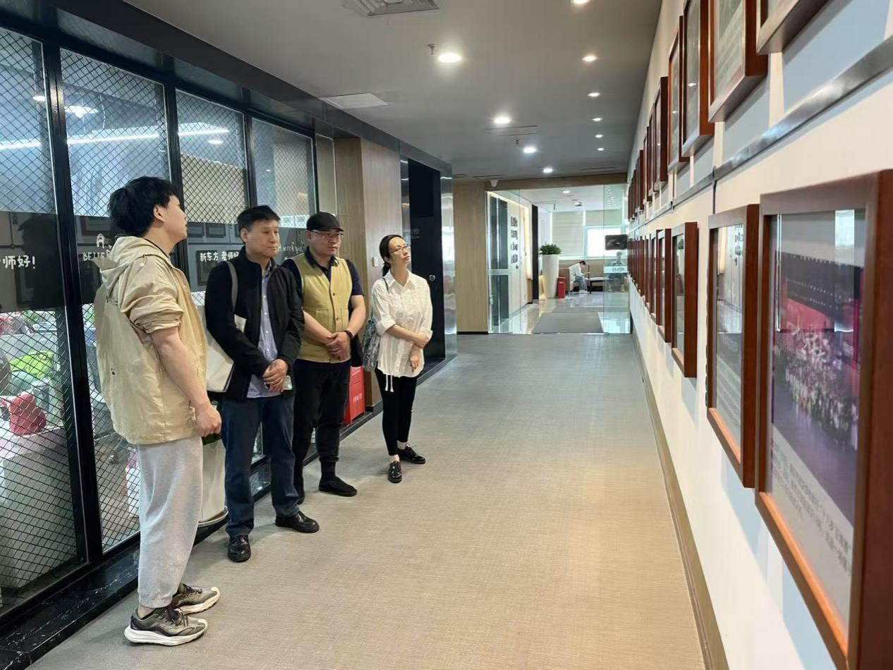 在张一铭的陪同讲解下,李军一行参观了新东方武汉总部,通过系统回顾新东方的演进史,了解其在教育领域的发展历程及服务地方经济社会发展的有效成果。