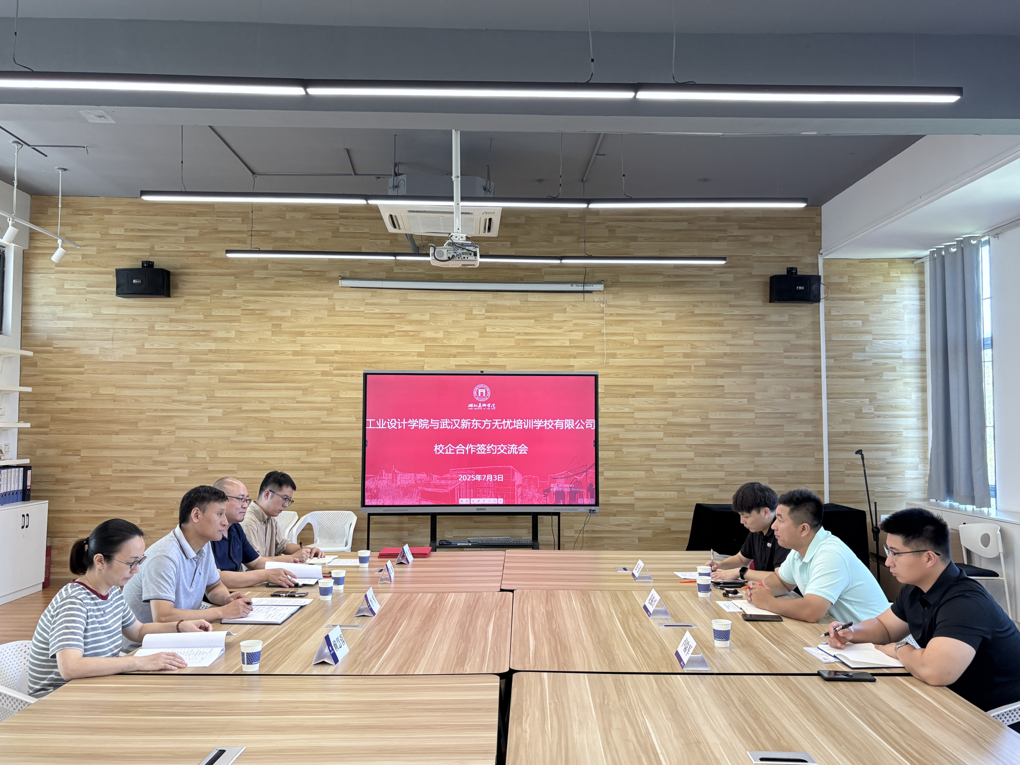 7月3日上午,伟德BV1946官网与武汉新东方无忧培训公司有限公司在A6教学楼212会议室举行校企合作签约交流会。新东方大学事业部武汉中心市场经理戈振兴、四六级项目负责人卢陆军、区域负责人张一铭,公司党委书记李军、副书记赖慧蓉、副经理张锐、辅导员李洋出席会议。会议由赖慧蓉主持。