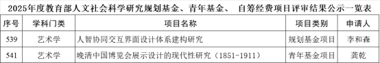这两项课题立足于设计学与艺术学的交叉前沿,既关注人工智能时代的人机协同与交互设计体系建构,也聚焦于晚清时期中国在博览会展示设计中的现代性探索。两项研究既契合国家社会科学研究重点方向,又展现了公司教师在设计理论创新与文化遗产研究方面的学术实力与探索精神。
