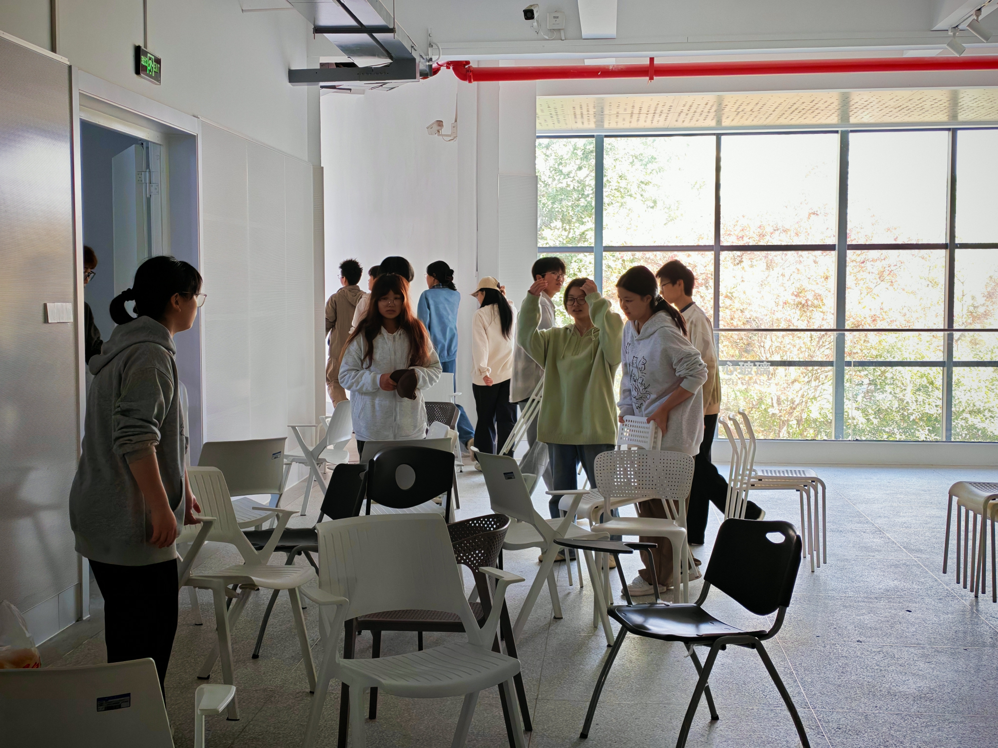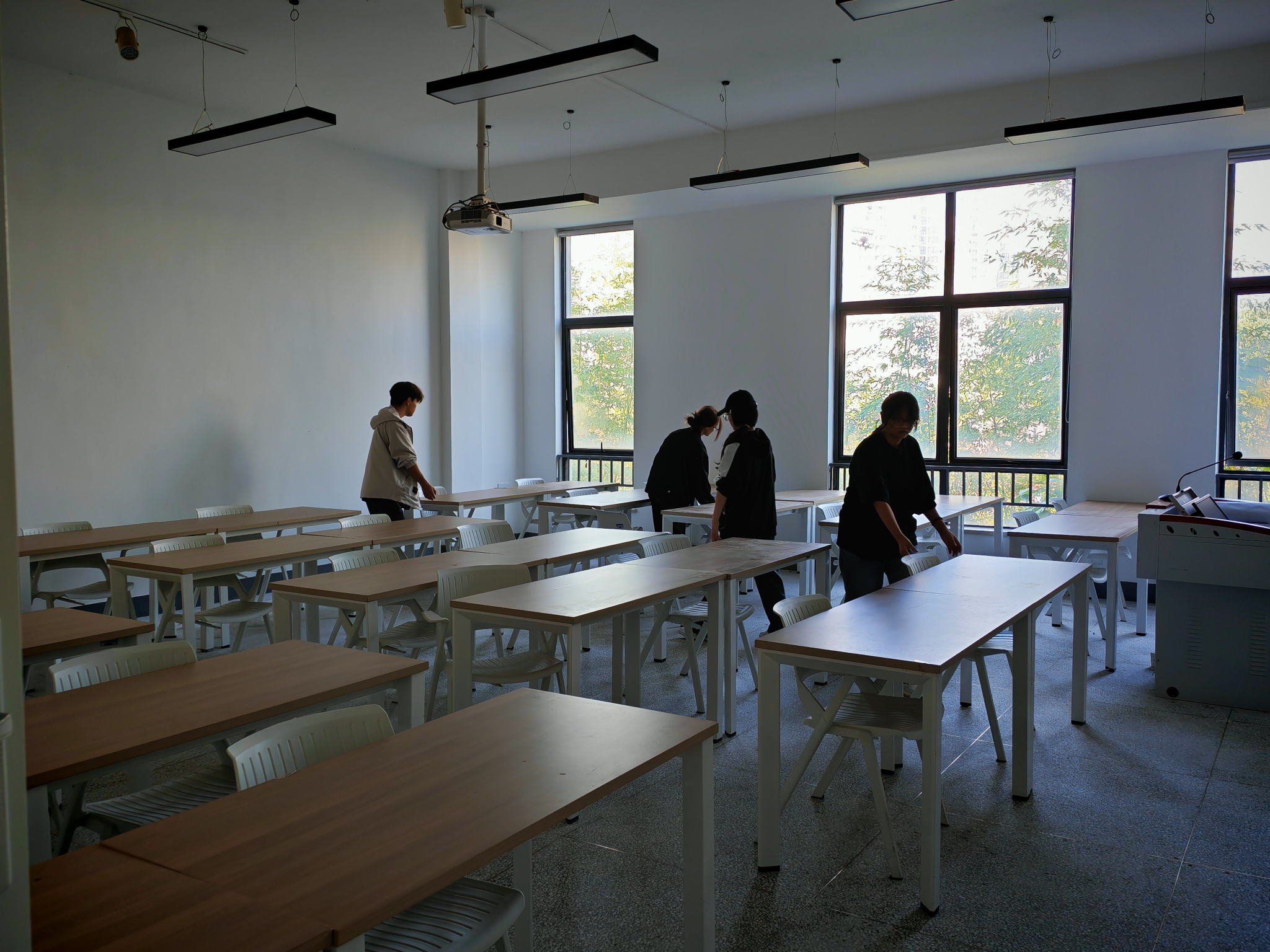 在辅导员李洋的带领下,同学们带着清洁工具到达各自负责区域,分工协作,配合默契,有的仔细擦拭桌椅门窗,有的认真清扫专业教室,有的重新调整教室桌椅,有的精心整理公共空间……在秋日阳光的映照下,教学楼处处都是热火朝天的劳动景象。经过一个多小时的共同努力,教学楼窗明几净,桌椅整齐,焕然一新。