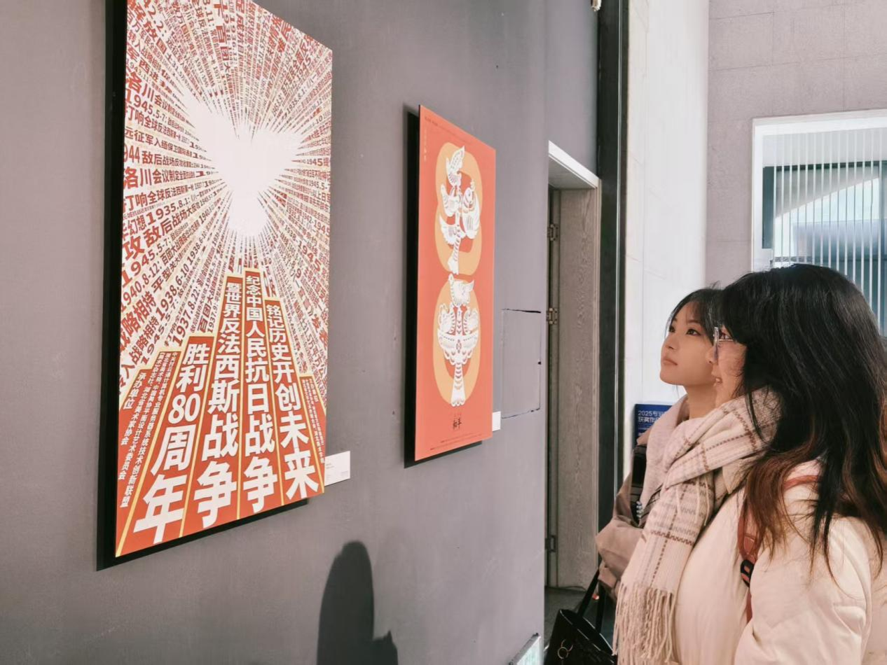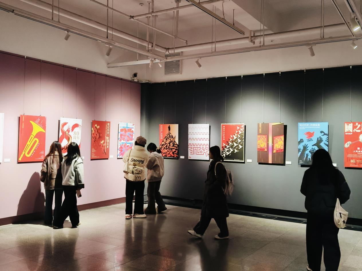 同学们反响热烈,纷纷表示这不仅是一次高质量的艺术观摩,更是一堂沉浸式的思政大课。2025级员工刘福表示,这些海报极具冲击力和感染力,作为设计专业员工,领悟到如何将重大历史主题转化为强有力的视觉叙事,对今后创作思路和责任感培养都有很大启发。2023级党员员工黄诗蕴表示,历史是最好的教科书,站在新时代回望那段峥嵘岁月,更应珍惜当下,将爱国情怀融入专业学习,用设计服务社会、传递正能量。