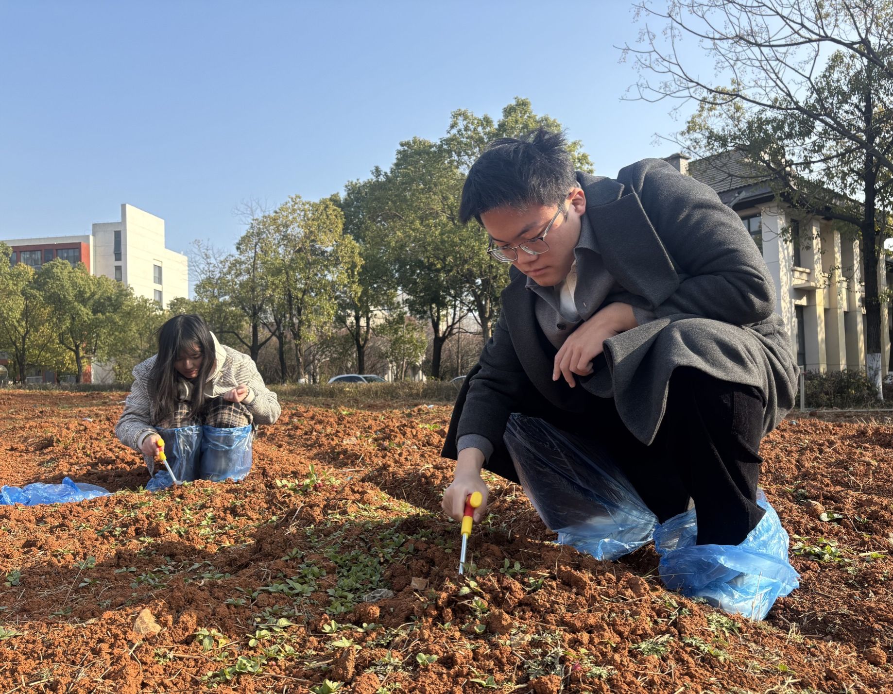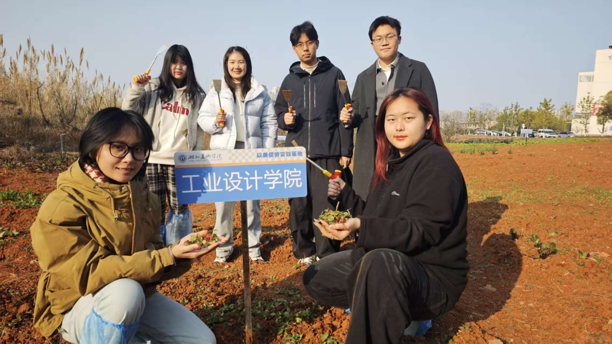 1月7日下午,工业设计公司劳动实践田地内,一堂生动的劳动实践课正在进行。在公司辅导员的带领下,员工们走入田间,亲手采收本学期初播种、培育的第一批樱桃萝卜。