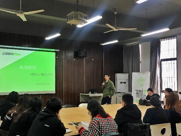 2018年3月16日上午,我系特邀三雄极光照明朱孝雄、杨凌燕老师为2015级展示设计专业员工讲授《光与空间—照明设计基础实践》专题讲座。