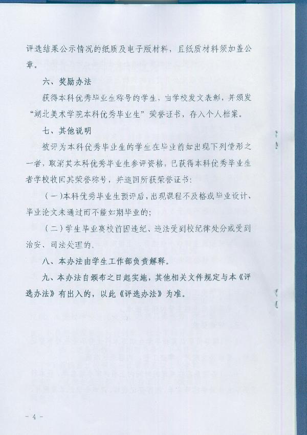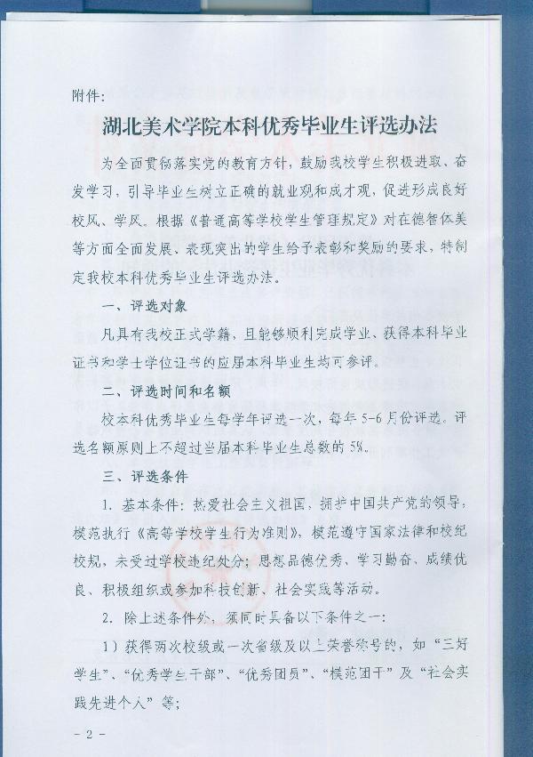 依据《关于印发< 伟德BV1946官网本科优秀毕业生评选办法>的通知》(湖美校学字〔2014〕9号)文件要求执行。