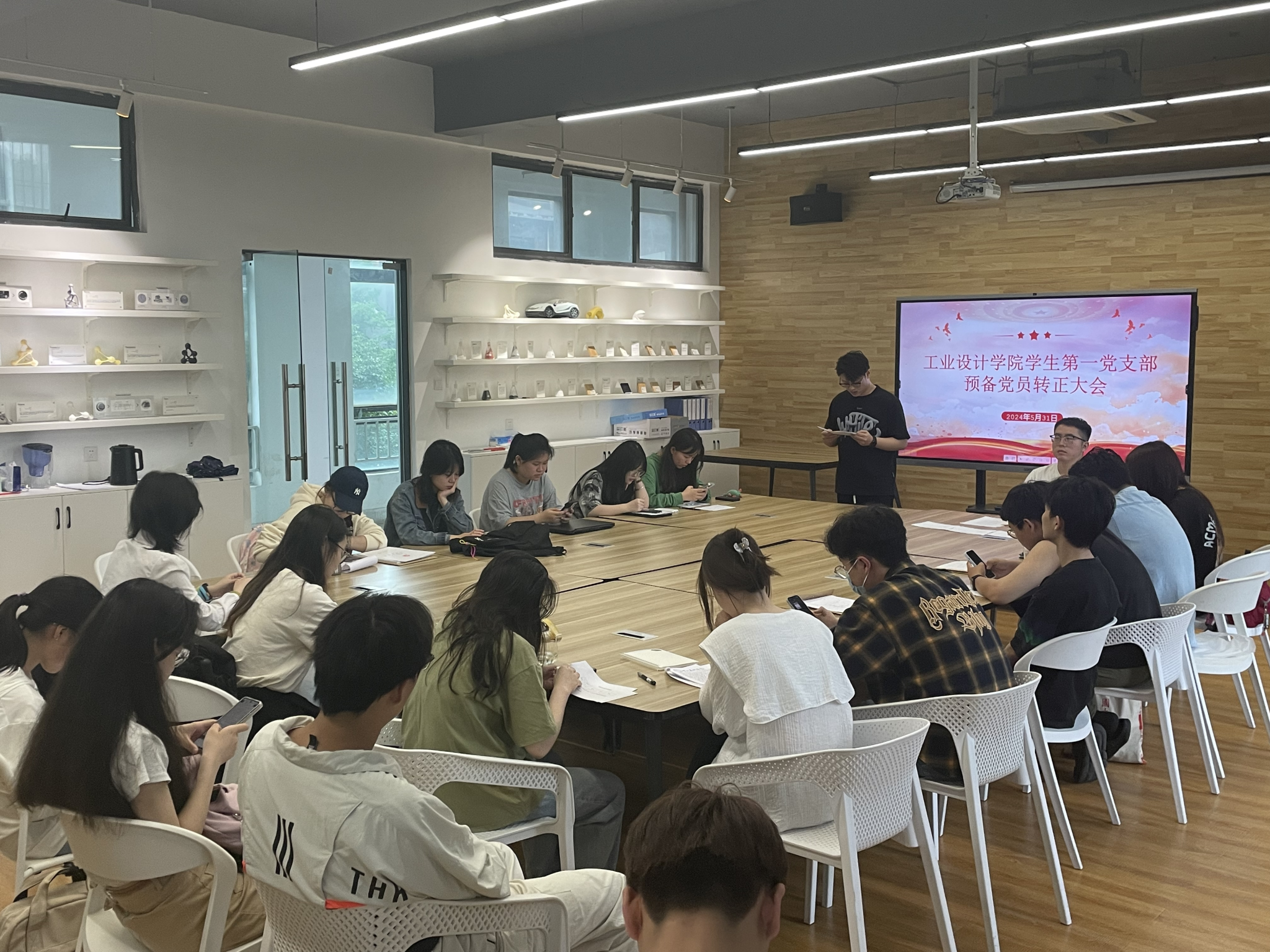 会议对预备期满的9名预备党员转正情况逐一进行讨论表决。9位同志依次汇报自己在预备期间的表现情况,入党介绍人总结其日常表现并就能否按期转正表明意见、支委会汇报教育考察情况、与会党员发表意见、正式党员进行无记名投票表决。会议决定金芷昕、张臻妍、曹行、鲁天赐、朱胜男、汤志航、吴睿恩、胡馨文、苏雨桐按期转为中共正式党员。上述同志进行表态发言并重温入党誓词。