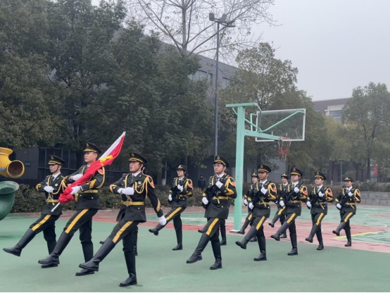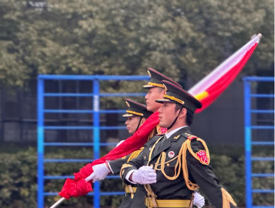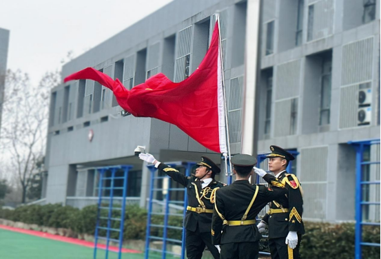 迎着清晨的第一缕阳光,伴随着嘹亮的口号声,公司国旗护卫队队员,身着礼服、昂首挺胸,踏着铿锵的步伐、走着整齐的队列,在全体师生的注目下走到主席台前。护卫队旗手奋力挥动右臂,将鲜艳的五星红旗抛向空中,《义勇军进行曲》响彻公司田径场,全场师生注视着国旗缓缓升至旗杆顶端,眼神中满是敬畏与自豪。