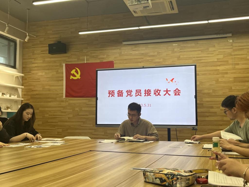 会议首先进行预备党员接收。经过党支部严格考察和培养,本学期共9名同志被列为发展对象。9名同志依次对自己一年来的表现进行汇报,随后入党介绍人分别介绍发展对象的培养考察情况并表明意见,支委会汇报审查情况,接着由全体正式党员对上述9名发展对象依次进行无记名投票表决,表决结果全票通过。最后金芷昕、张臻妍、曹行、鲁天赐、朱胜男、汤志航、吴睿恩、胡馨文、苏雨彤被员工第一党支部接收为中共预备党员。