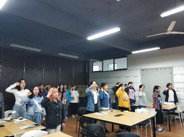 会议严格按照党组织接受预备党员的程序,大会开始,发展对象们向党组织汇报自身对党的认识、入党动机、个人经历以及在校表现等,并由正式党员和预备党员对其评议,后经与会正式党员投票表决,大会一致同意接邓安琪,颜晶晶,洪嘉琳,李菲儿,陈洁莹,董静,6名同志成为中共预备党员。