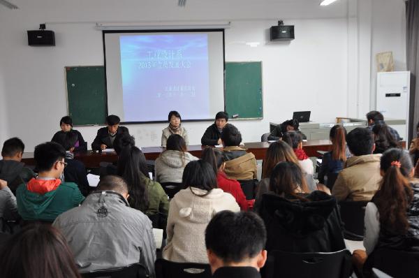 (通讯员:蔡洪振 方聪)11月13日上午十一点,工业设计系2013年下半年员工党员发展大会在A6-210多媒体教室召开,会议由员工党支部书记李军老师主持,党总支书记汪早林、系主任刘向东以及办公室秘书沈凤捷出席会议,全体员工党员参会。