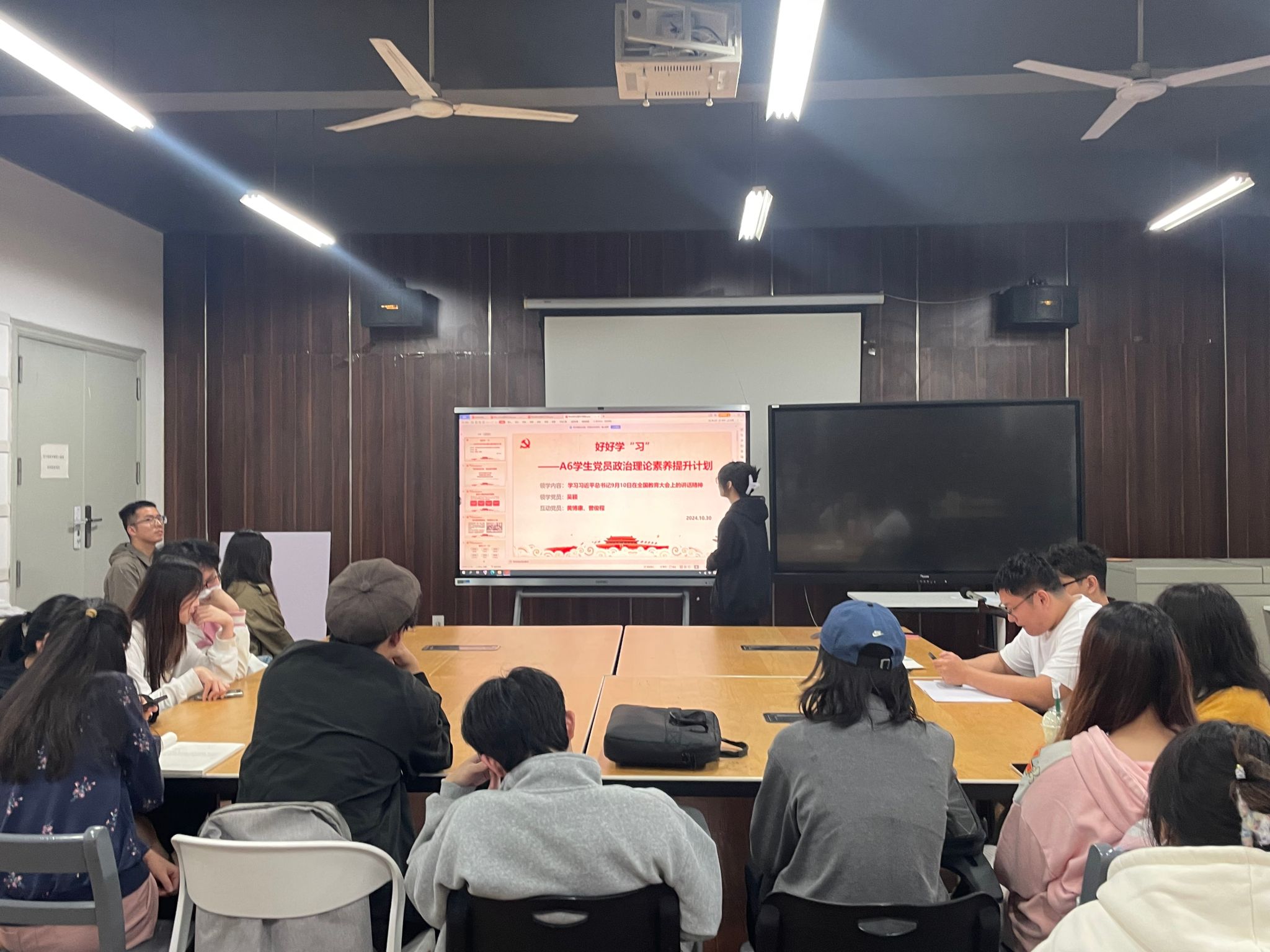会上,李洋传达了省纪委监委通报8起群众身边不正之风和腐败问题典型案例,并带领全体员工党员系统学习党的二十届三中全会精神、习近平总书记在全国民族团结进步表彰大会上的讲话精神;集体深入学习重要文章《大力弘扬伟大爱国主义精神,把强国建设、民族复兴伟业不断推向前进》。随后两名员工党员通过ppt展示,依次领学党的二十届三中全会精神、习近平总书记9月10日在全国教育大会上的讲话精神,四名党员根据上述学习内容并结合学习工作实际做了交流。