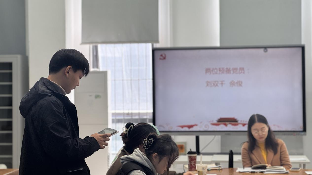在本次会议中,重点针对预备期满的两位预备党员的转正事宜展开了逐一讨论与表决。佘俊与刘双千两位同志依序详细汇报了自己在预备期间的综合表现情况。入党介绍人认真总结他们的日常点滴表现,并就其能否按期转正郑重表明个人意见,紧接着支委会对教育考察情况进行了汇报。与会党员们纷纷踊跃发言,各抒己见,充分表达看法。随后,正式党员们以无记名投票的方式进行表决,会议最终决议同意佘俊、刘双千按期转为中共正式党员。两位同志相继进行了深刻的表态发言,并庄重地重温了入党誓词。