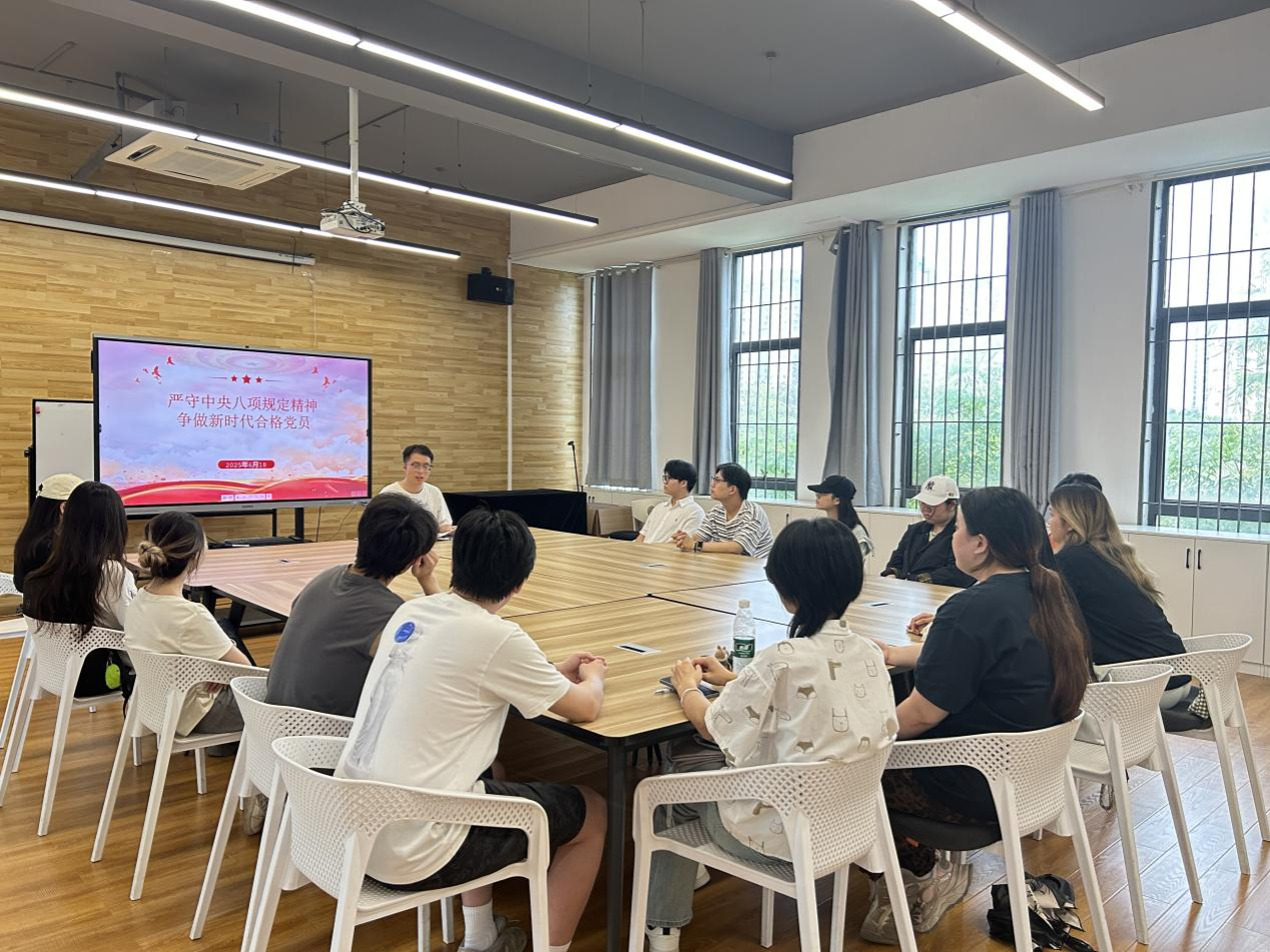 会上,两名员工党员通过ppt展示,依次领学《党的十八大以来深入贯彻中央八项规定精神的成效和经验》和习近平总书记重要文章《加快建设教育强国》,四位员工党员根据学习内容结合自身学习工作实际进行交流互动。