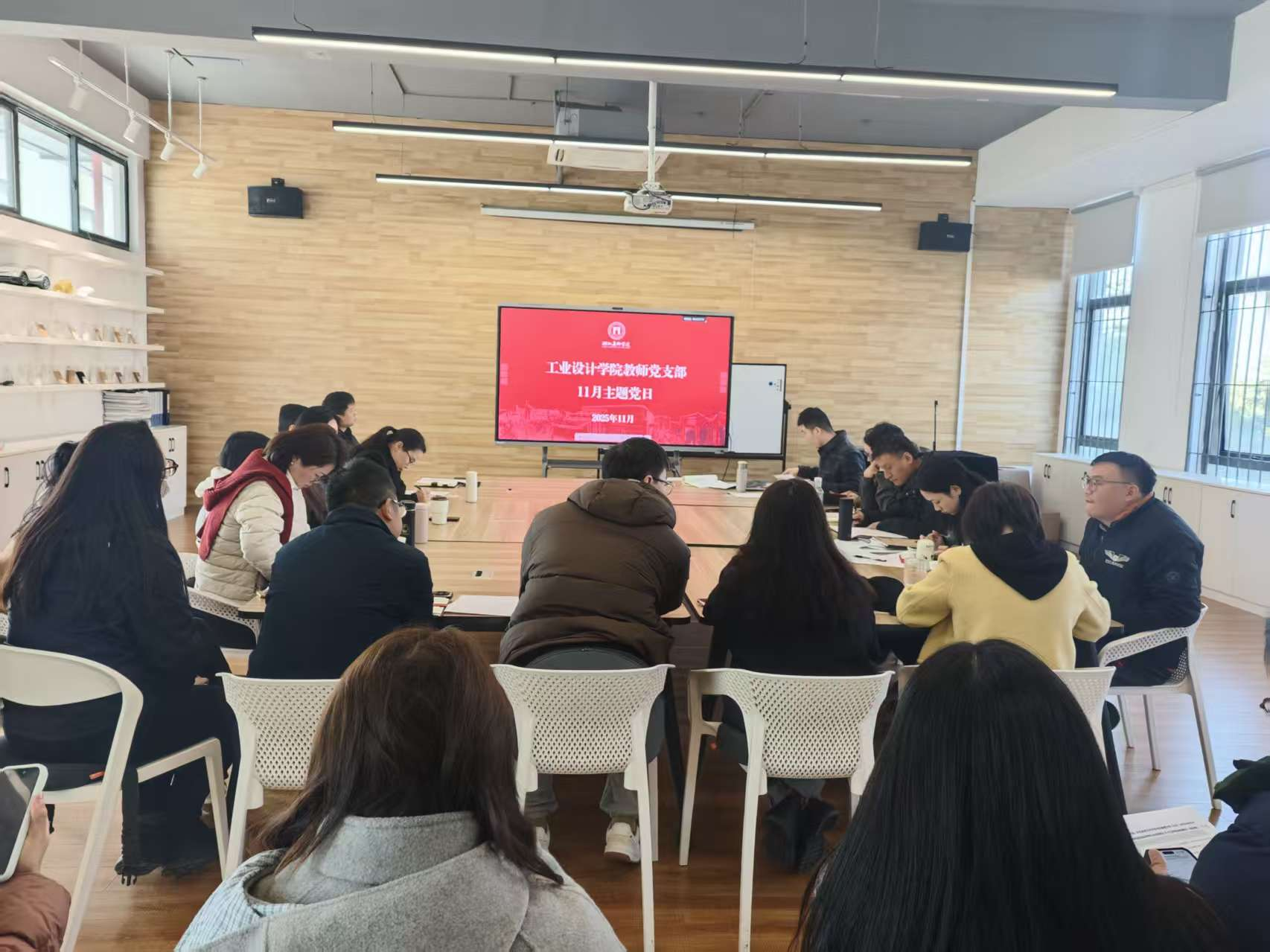 支部书记赵飞作总结讲话。一是深刻把握四中全会精神,特别是青年教师要利用业余时间持续深入学习,读原著、学原文、悟原理,真正做到学深悟透、融会贯通。二是强化师德师风建设,把为党育人、为国育才作为立身之本,坚持以德立身、以德立学、以德施教,做员工为学、为事、为人的示范。三是强化学科特色与服务发展导向,要将“设计服务人民”的理念深度融入团队建设与人才培养全过程,推动教学、创作与社会服务协同并进。